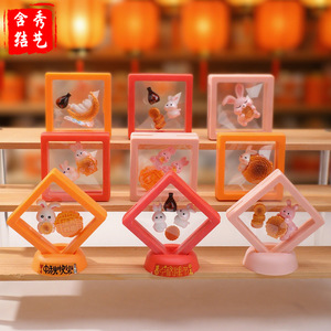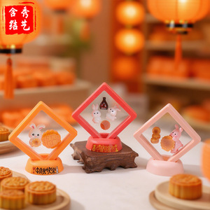 中秋节兔子摆件 可爱风趣悬浮PE膜透明挂件中秋桌面场景装饰摆件