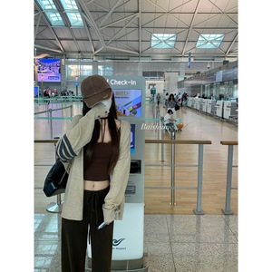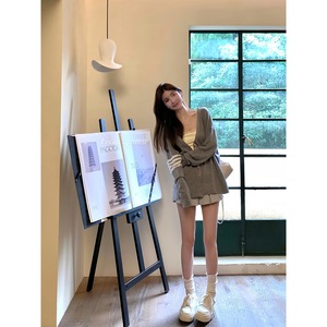白水女 TB学院风 灰色针织开衫外搭女薄款韩系早秋宽松上衣外套