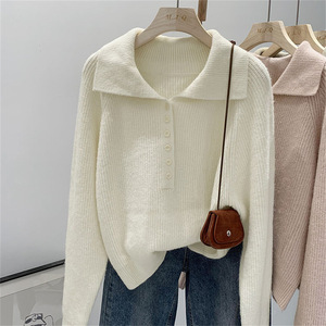 韩系慵懒风翻领毛衣女春秋2025年新款简约显瘦软糯针织衫百搭上衣