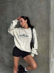 2025早秋新款美式复古印花上衣设计感落肩袖圆领套头休闲百搭卫衣