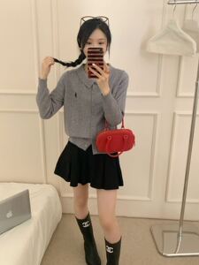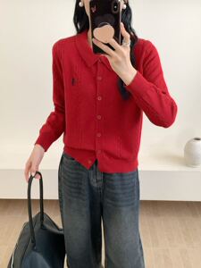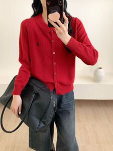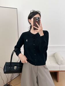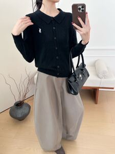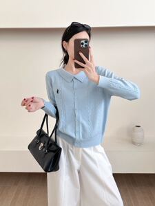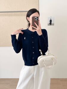 毛衣女秋冬新款韩系气质小马刺绣POLO领百搭长袖针织开衫上衣外套