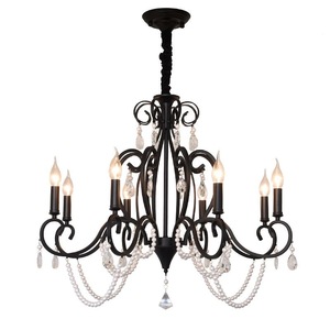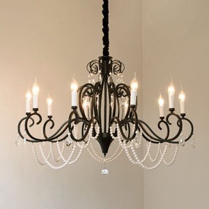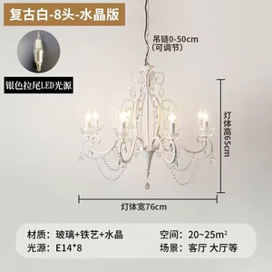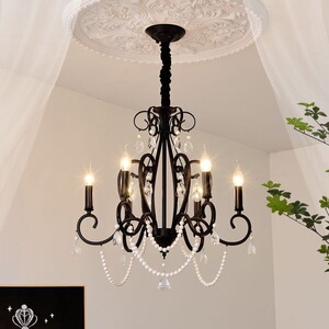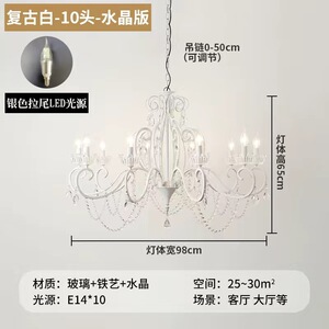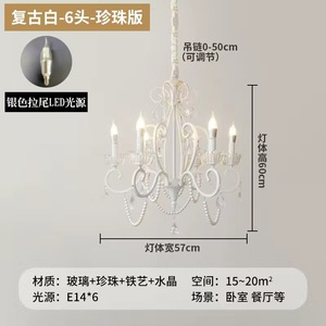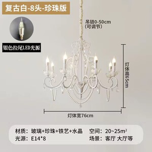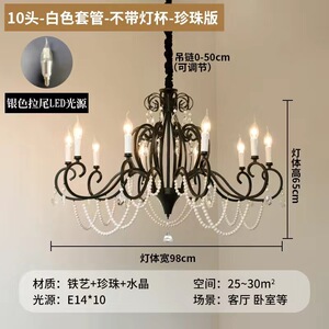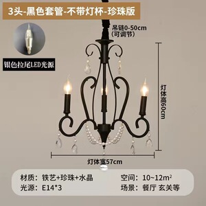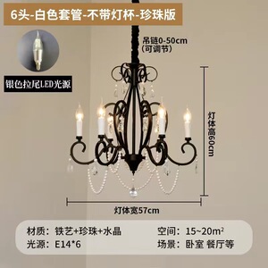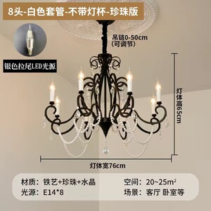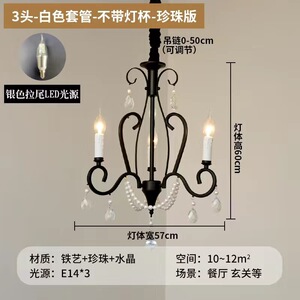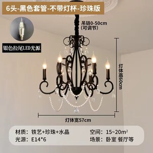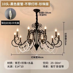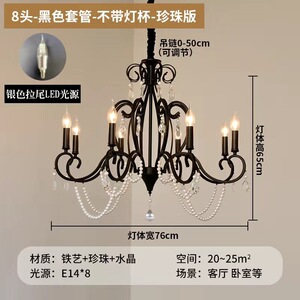 法式复古灯客厅水晶灯美式简约创意黑色珍珠蜡烛灯具卧室餐厅吊灯