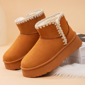 鞋子女雪地靴跨境TEMU代发棉鞋加绒加厚棉靴一脚蹬中筒靴厚底女靴