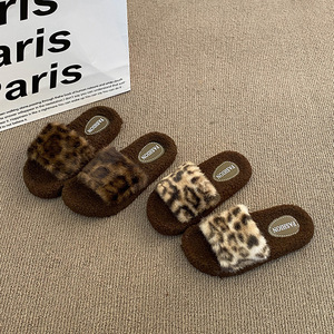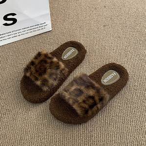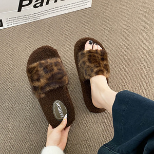 爆款韩版豹纹毛绒加厚毛毛拖鞋女外穿保暖秋冬季家用卧室防滑棉拖