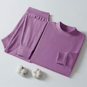 100%纯棉秋衣秋裤女士保暖内衣薄款中青年女纯色打底全棉内衣套装