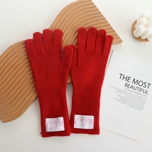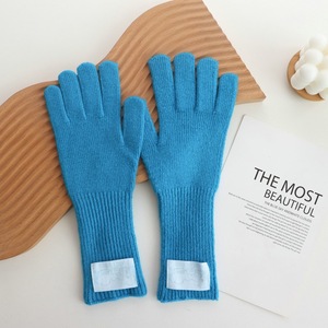 韩国时尚贴标长款羊毛手套露指可触屏女秋冬五指保暖百搭防风防寒