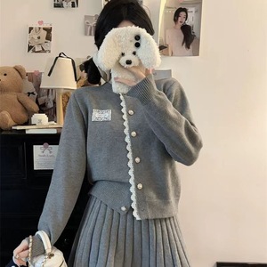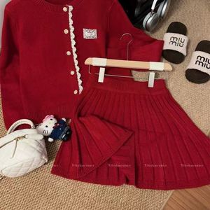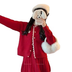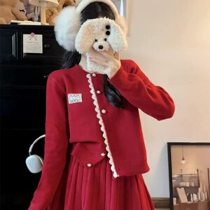 法式宽松毛衣针织开衫上衣女秋冬叠穿超仙显瘦百褶半身裙两件套装