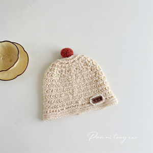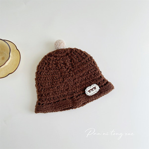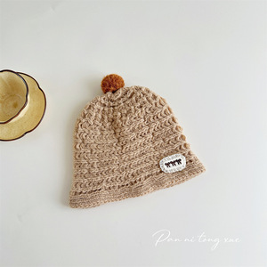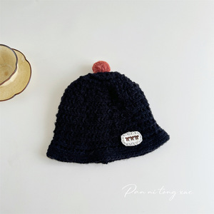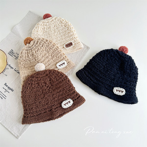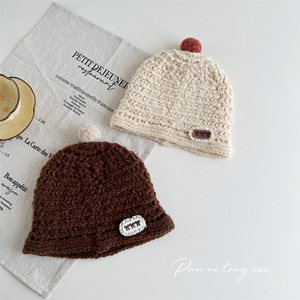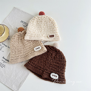日系毛球蕾丝儿童毛线帽赫本编织帽女出游百搭保暖针织渔夫帽子潮