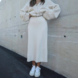 欧美跨境女装长裙2025秋新款居家休闲V领长袖毛衣外套针织一步裙