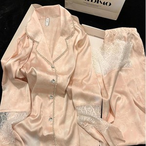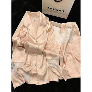 靓尚萌韩版时尚女士冰丝睡衣套装春季新品大码长袖家居服外穿