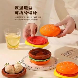 可爱创意汉堡陶瓷碟家用蘸料调味小碟子叠加盘子酱油碟小菜醋碟子