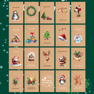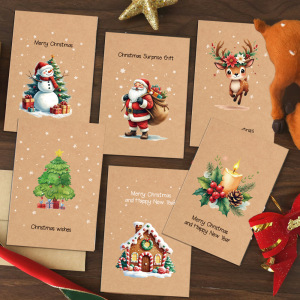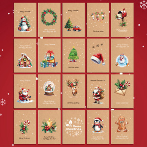 跨境新款圣诞节复古牛皮色贺卡20pcs明信片套装新年节日祝福卡片