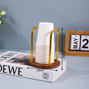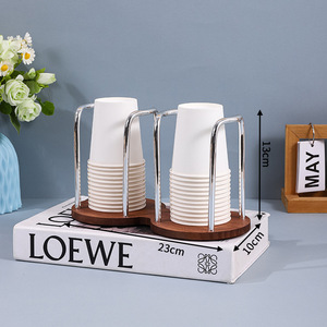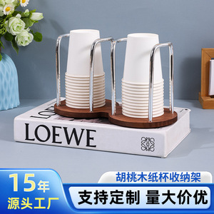 跨境胡桃色杯子展示架一次性纸杯收纳架高级感桌面咖啡杯置物架