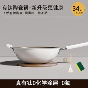 家用有钛炒锅不粘锅陶瓷平底炒菜锅煎炒锅燃气灶煤气灶电磁炉可用