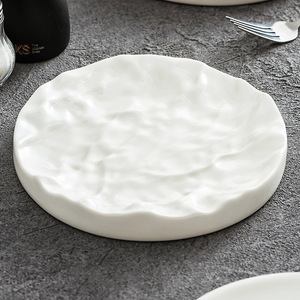 德化白瓷空心盘子石纹摆盘餐厅菜盘现代简约甜品盘商用西餐点心盘
