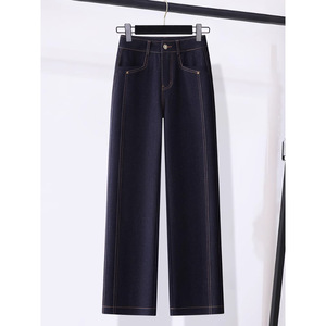 丹宁蓝复古阔腿牛仔裤女2025秋季新款窄版显瘦百搭高腰宽松九分裤