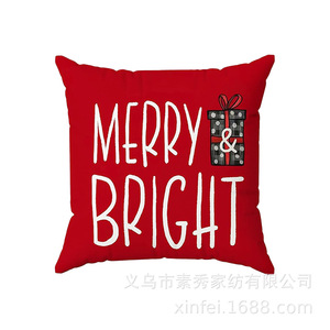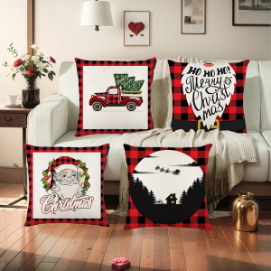 2025新款跨境圣诞节超柔亚麻抱枕靠垫四件套家用久坐45*45抱枕套
