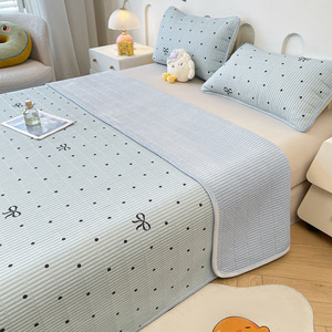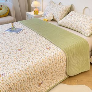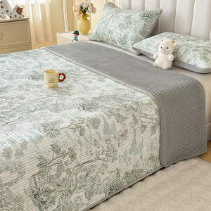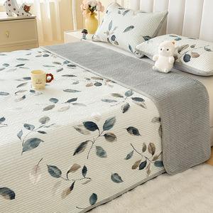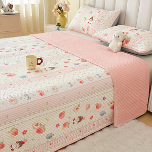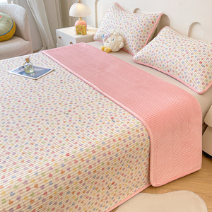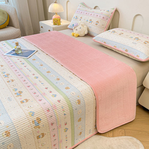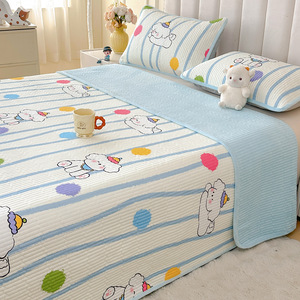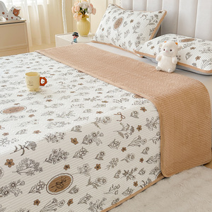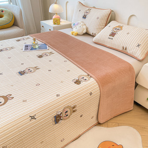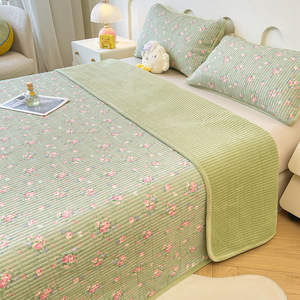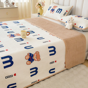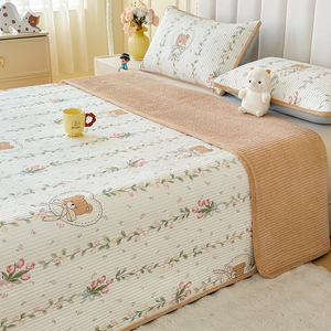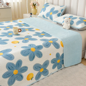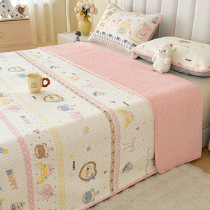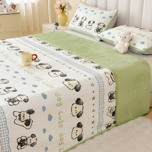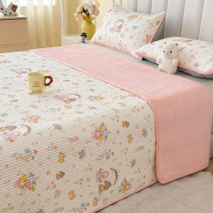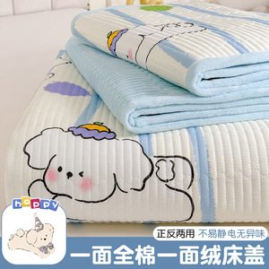 儿童卡通纯棉床盖单件四季通用牛奶绒床垫正反两用夹棉床单三件套
