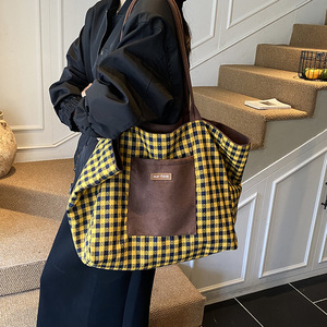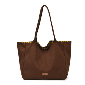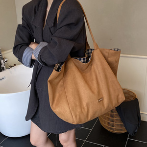 慵懒风复古双面背绒布托特包潮秋冬氛围感休闲大容量购物袋妈咪包