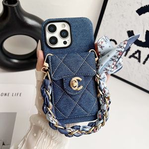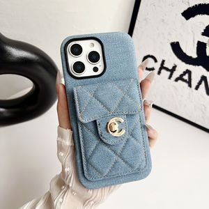 欧美潮牌锁扣小香牛仔插卡包适用iPhone16promax手机壳苹果全包13