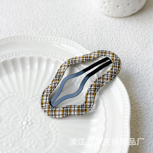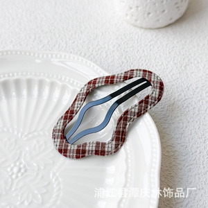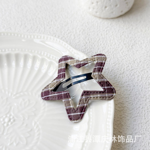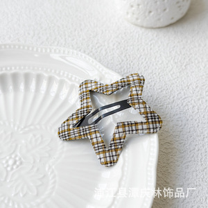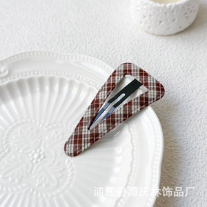 新款红色格纹格子发夹秋冬儿童BB夹三角星星云朵水滴镂空一字夹