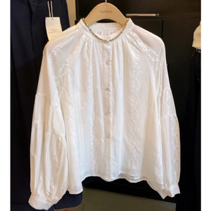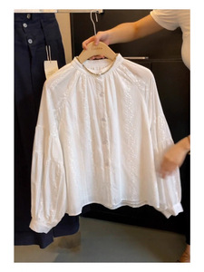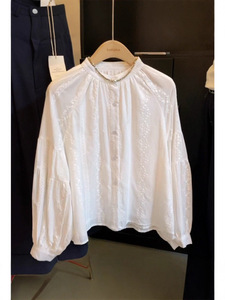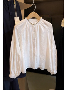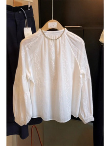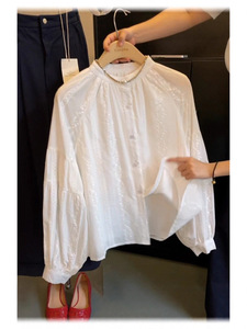法式提花刺绣白色衬衫女秋季收褶气质上班职业装衬衫上衣女A7006