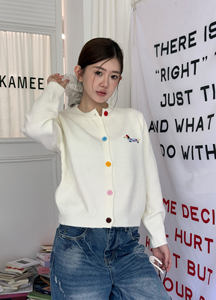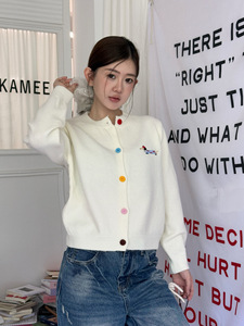 ME KAKAMEE十三行秋甜酷糖果色扣子腊肠狗刺绣内外穿开衫毛衣 789