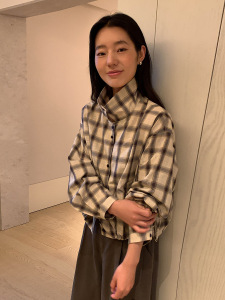【清仓不退不换】MOXI十三行女装韩版设计感夹克格子衬衫上衣外套