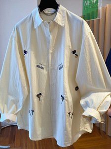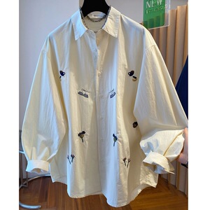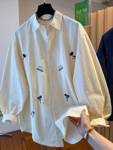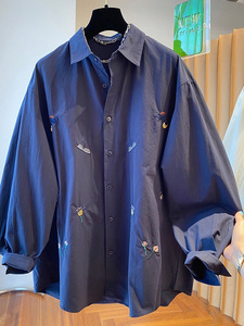 减龄刺绣纯棉长袖衬衫女2025新款宽松大版显瘦早秋氛围感穿搭上衣