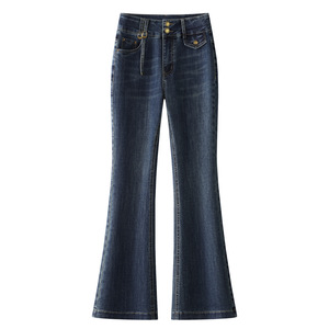 蓝色复古微喇牛仔裤女2025秋季新款高腰修身显瘦小个子九分喇叭裤