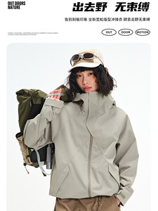 鸟家同款户外软壳衣女防风机能三防冲锋衣男休闲登山连帽外套潮款