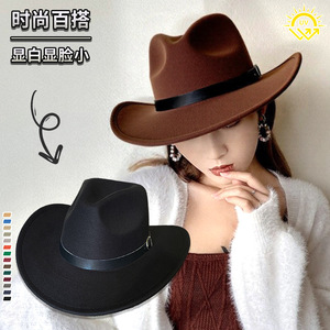 美式复古潮纯色西部牛仔帽高级晚宴爵士帽户外休闲遮阳防晒骑士帽