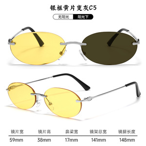 金属感光变色无框太阳镜ins复古街拍潮流墨镜男嘻哈炫酷眼镜框女