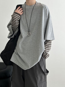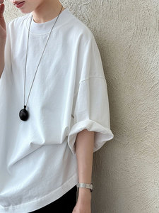 鹿西早秋打底衫~极简五分袖加绒磨毛T恤女廓形BF宽松短袖上衣2072