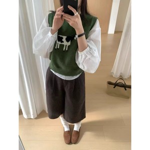 O MI-韩系慵懒风卡通奶牛提花圆领针织马甲H2031