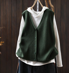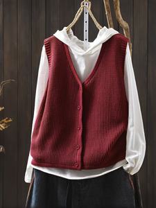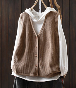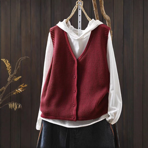 秋季新款 小马甲女纯色棉线针织V领简约休闲无袖背心26077