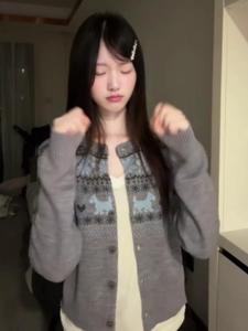 灰色韩系氛围感早秋季软糯提花开衫毛衣外套女复古针织衫外搭上衣