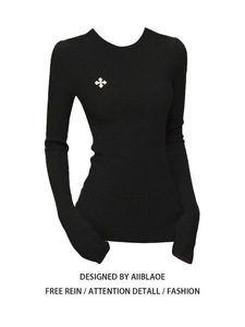 大衣内搭打底衫粗坑条紧身针织衫女秋冬十字提花修身正肩早秋上衣