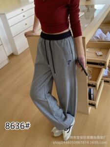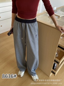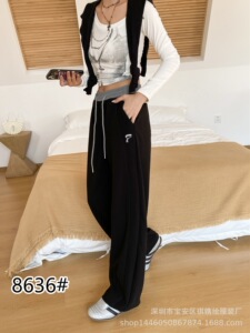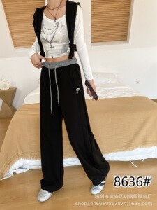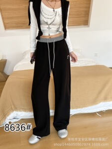 琪镌绘制薄款裤子秋季款拼色卫裤女宽松显瘦休闲宽松垂感长裤8636