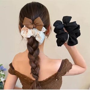 温柔珍珠串立体蝴蝶结褶皱大肠发圈女百搭可爱丸子头发绳气质发饰