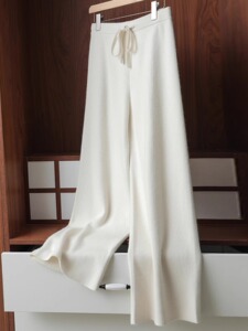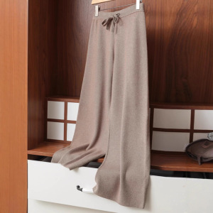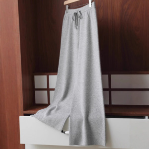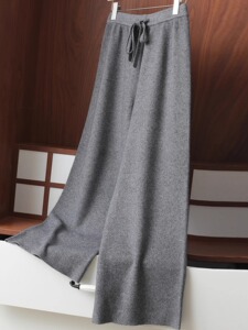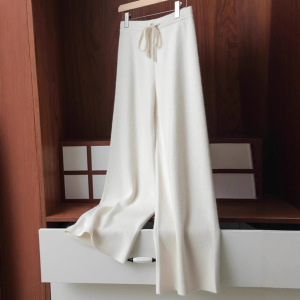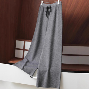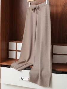 2025秋季针织阔腿裤女外穿加厚高腰宽松直筒裤羊绒垂感拖地神裤女