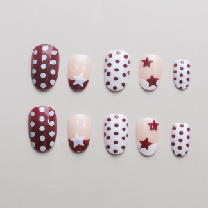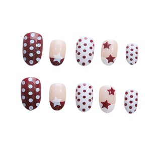 新款韩版白色波点假指甲片24片装成品彩色可爱美甲贴片穿戴甲
