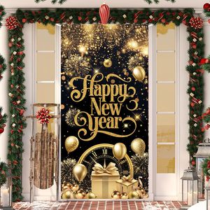 新款跨年黑金新年快乐门罩门布盖冬季节日装饰氛围装派对用品横幅