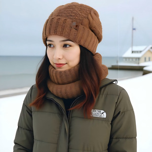 TEMU冬季欧美帽子围脖套装女士防寒保暖针织帽护耳套头毛线帽跨境