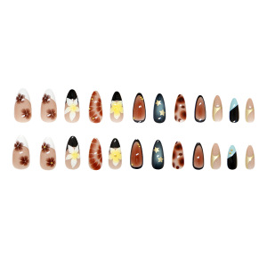 立体冰透百合法式腮棕金珠复古气质欧美风可拆卸穿戴甲24片