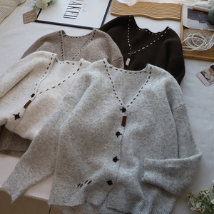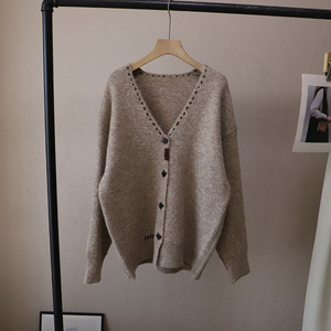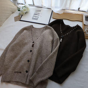 [比正]2025秋冬新韩版高级感V领慵懒大码百搭开衫毛衣外套女4909