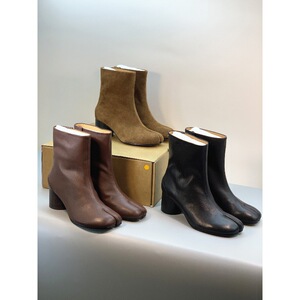 出口原单~mm6经典粗跟秋冬分趾短靴时尚复古百搭真皮舒适瘦腿靴女