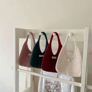 2025韩国博主同款含羊毛托特包新款百搭时尚纯色针织墩墩包手提包