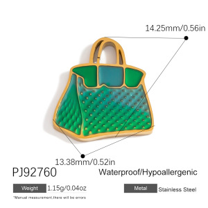 欧美不锈钢饰品手工DIY爱心包包配件轻奢高级感滴油18K金保色吊坠