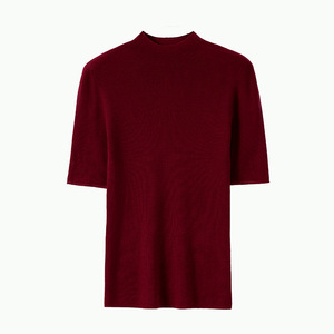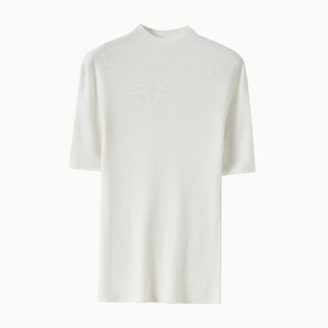 【德国60支扬子纱】精纺100%羊毛半高领五分袖打底衫女中袖针织衫
